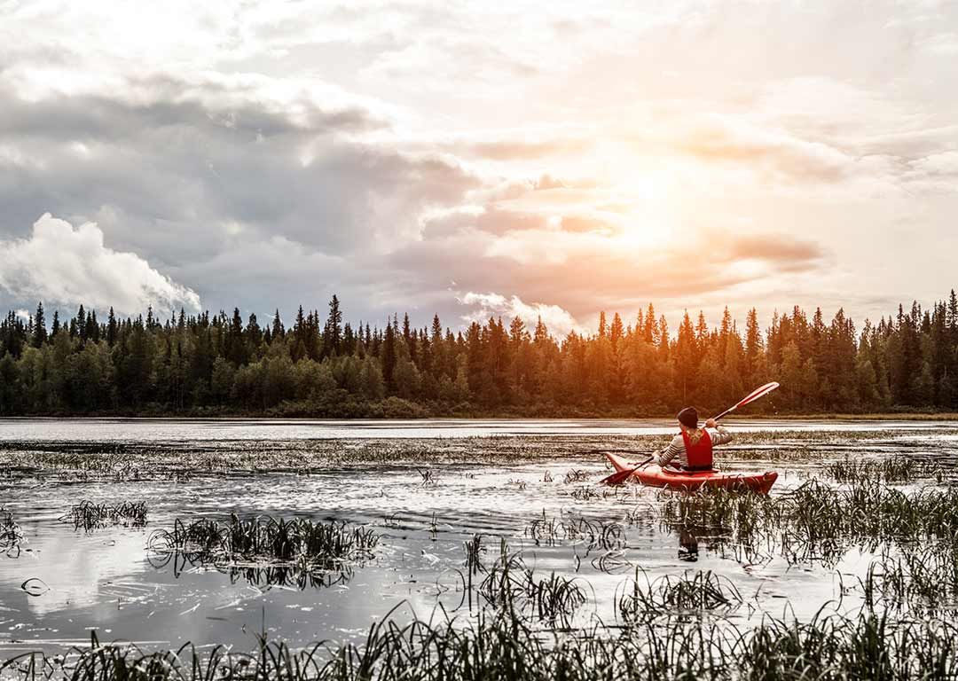 The clear-water Lake Juumajärvi is an excellent place for canoeing.
